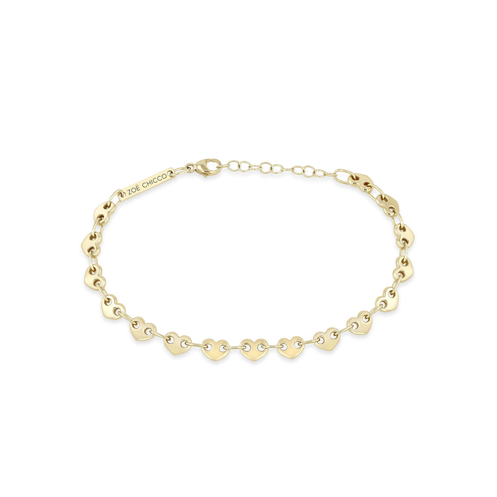 14k Gold Small Puffed Heart Mariner Link Bracelet - SALE
