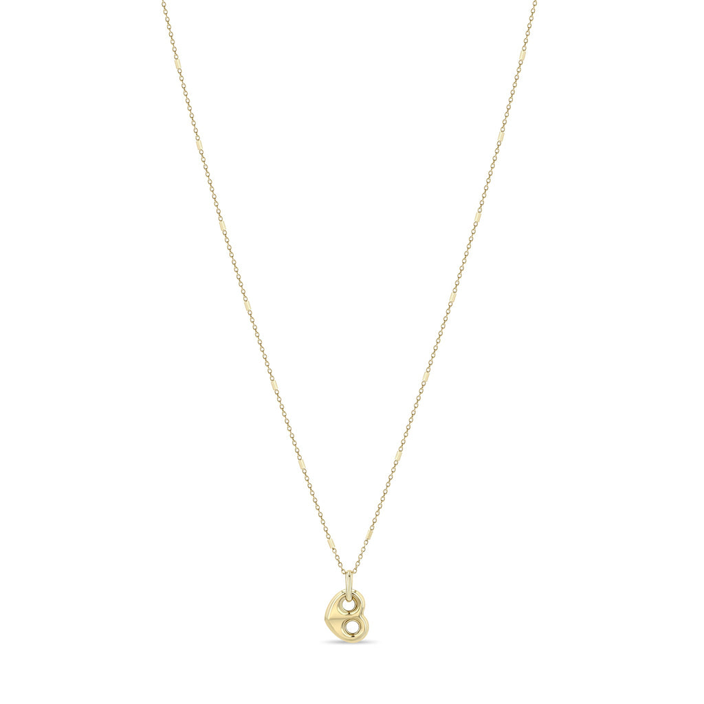 14k gold tiny bar and cable chain necklace with a medium puffed heart mariner link pendant