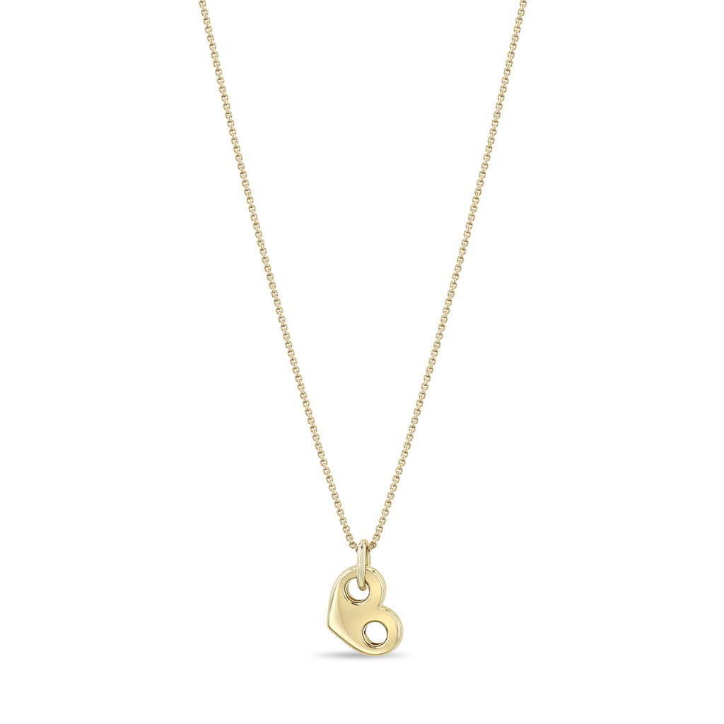 14k gold extra small box chain necklace with a large puffed heart mariner link pendant