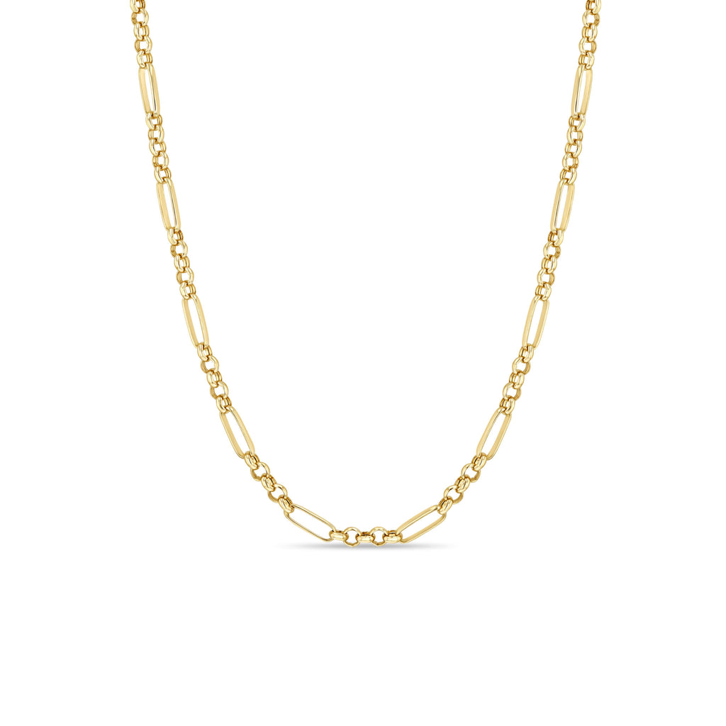 14k gold adjustable medium mixed paperclip rolo chain necklace