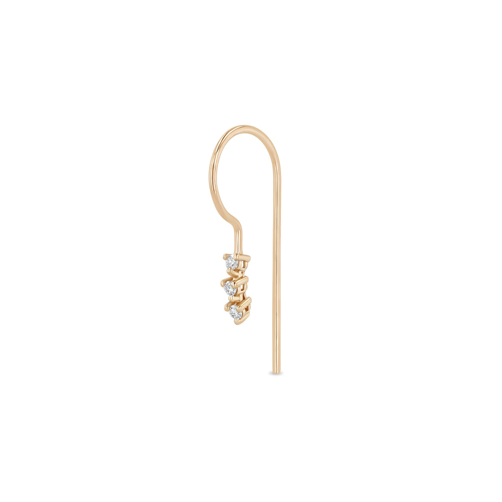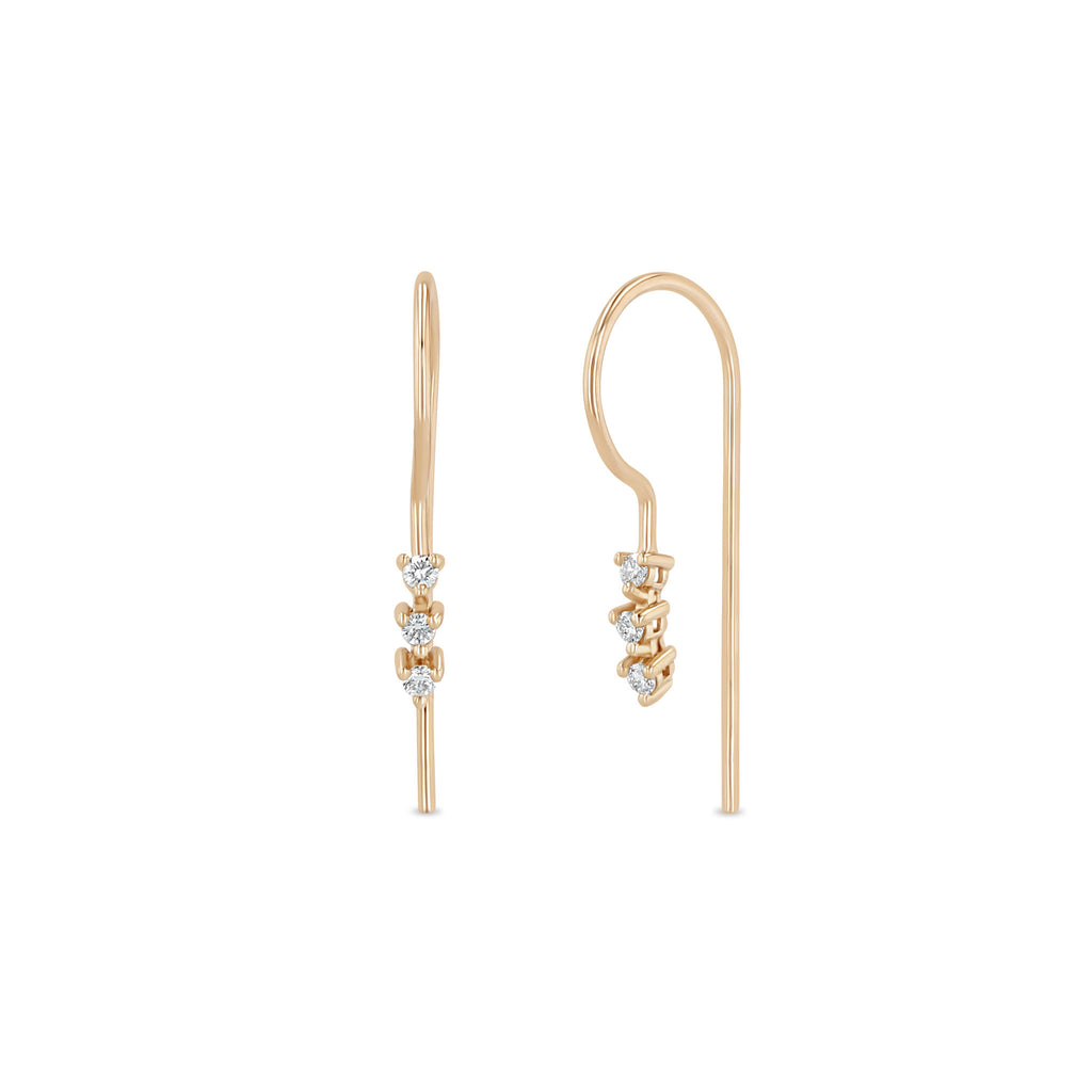 14k gold wire threader hook earrings with prong set diamond tennis segments