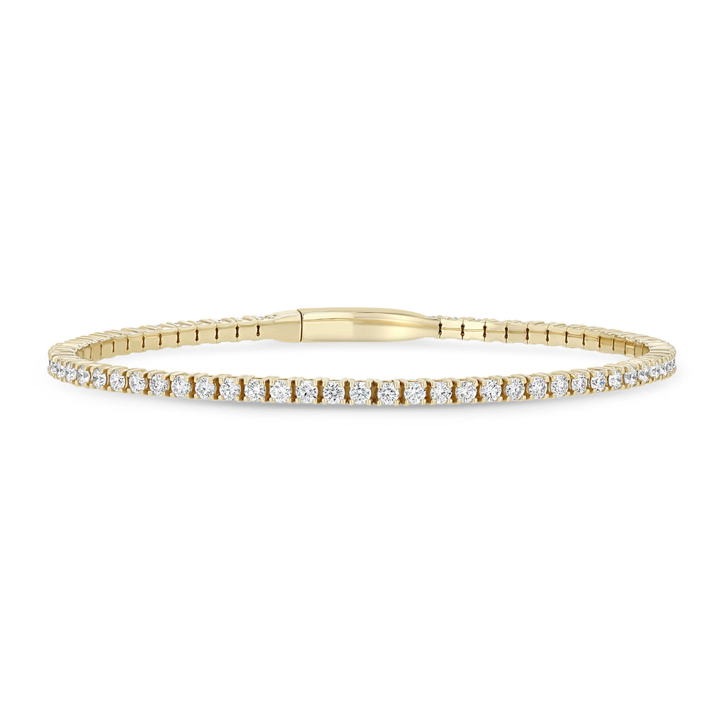 14k gold diamond tennis flex bangle bracelet with a push lock clasp in the back