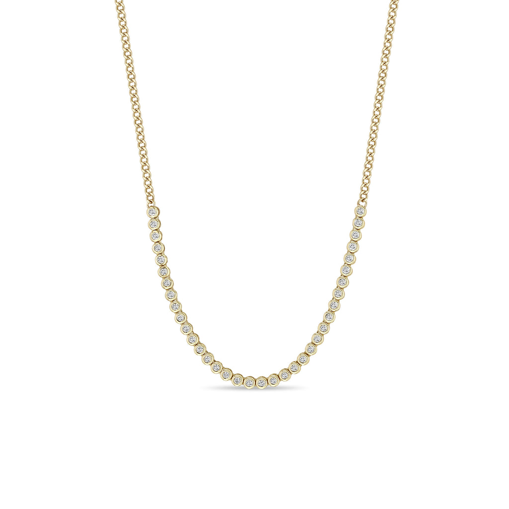 14k gold extra small hollow curb chain necklace with a tennis segment of small bezel set round diamonds linked together