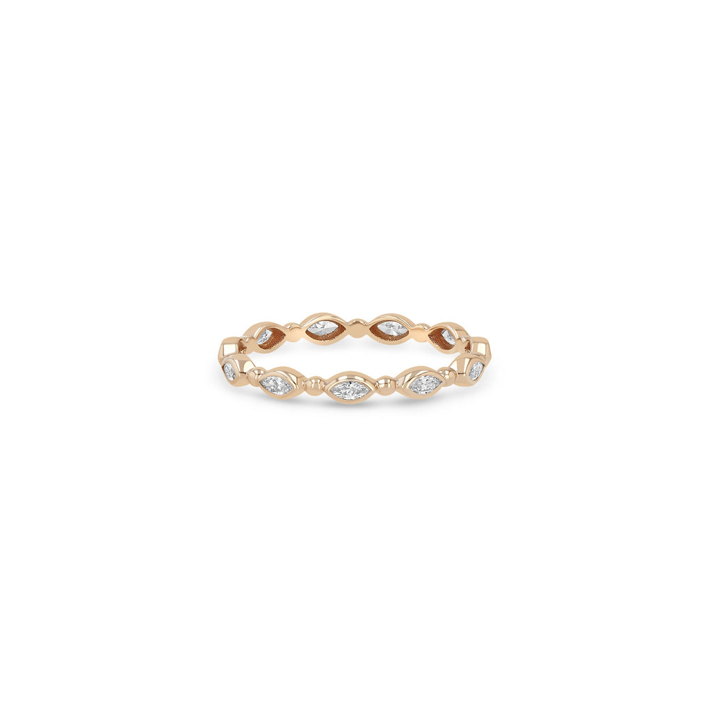 14k gold bead and bezel set marquise diamond eternity band ring