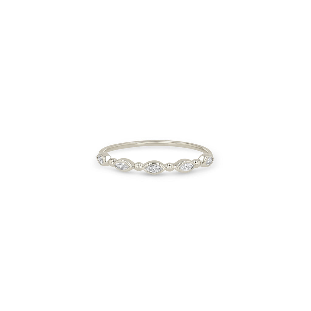 14k Alternating Marquise Diamond Bezel & Bead Ring