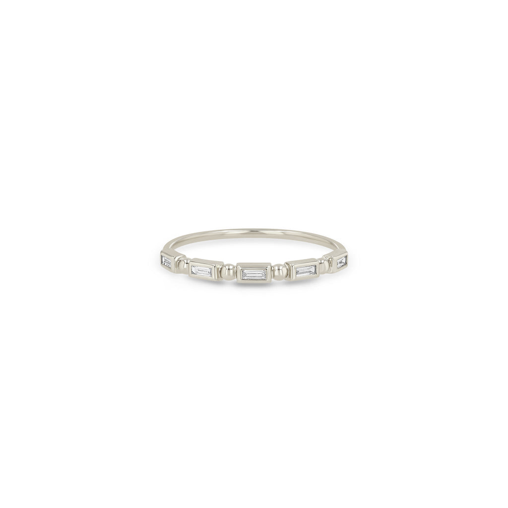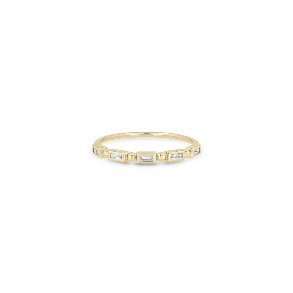 14k gold bead ring with five alternating bezel set baguette diamonds