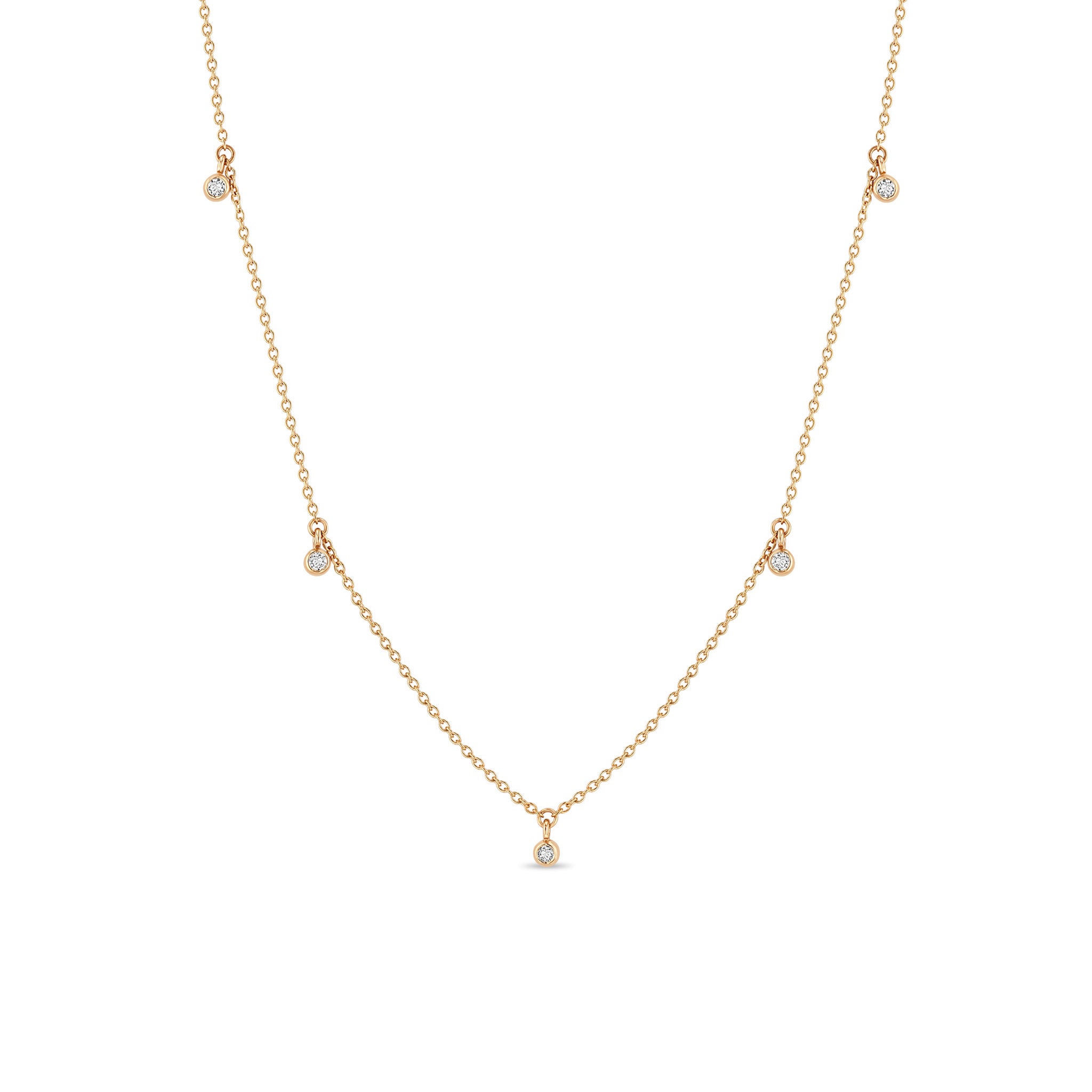 14k 5 Dangling Diamond Bezel Necklace