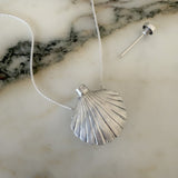 Sterling silver shell perfume bottle necklace on an extra small box chain created from an authentic vintage Tiffany & Co. perfume bottle. Bottle unscrews with dabber. Piece is hallmarked.